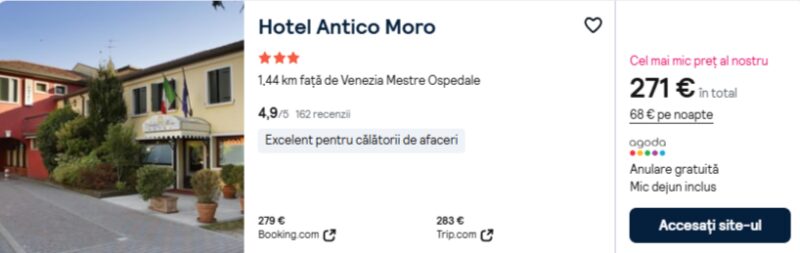 171 €/pers. (zbor si cazare Hotel Antico Moro )