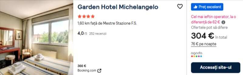 187 €/pers. (zbor si cazare Garden Hotel Michelangelo )