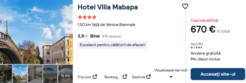 368 €/pers. (zbor si cazare Hotel Villa Mabape )