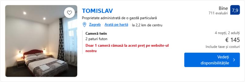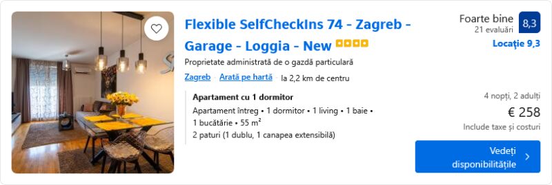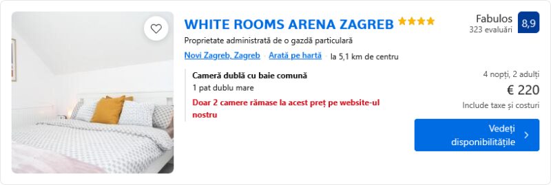 223 €/pers. (zbor si cazare WHITE ROOMS ARENA ZAGREB )
