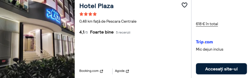 360 €/pers. (zbor si cazare Hotel Plaza )