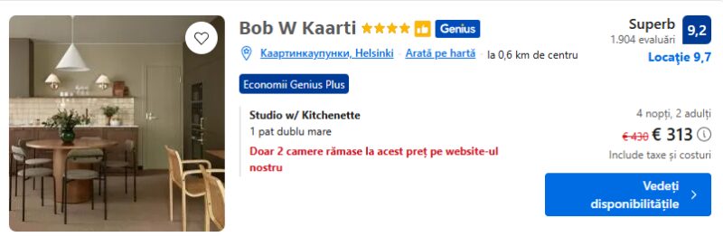 271 €/pers. (zbor si cazare Bob W Kaarti )