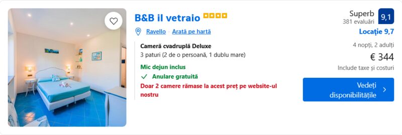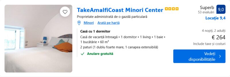 171 €/pers. (zbor si cazare TakeAmalfiCoast Minori Center )