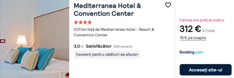 196 €/pers. (zbor si cazare Mediterranea Hotel & Convention Center )