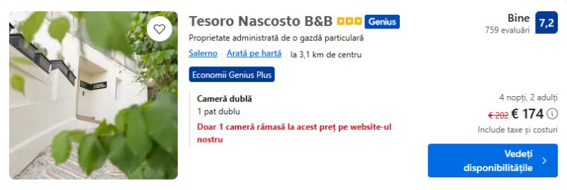 150 €/pers. (zbor si cazare Tesoro Nascosto B&B )