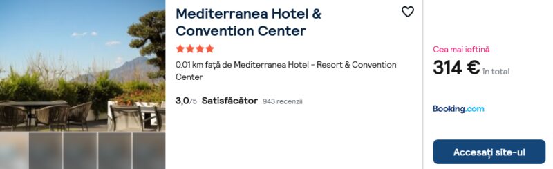 217 €/pers. (zbor si cazare Mediterranea Hotel & Convention Center )
