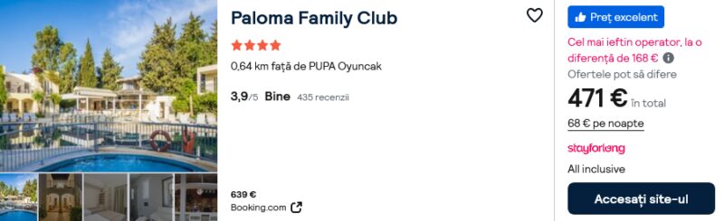 363 €/pers. (zbor si cazare Paloma Family Club )