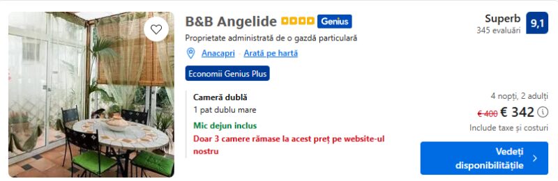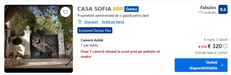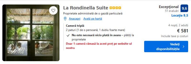 359 €/pers. (zbor si cazare La Rondinella Suite )