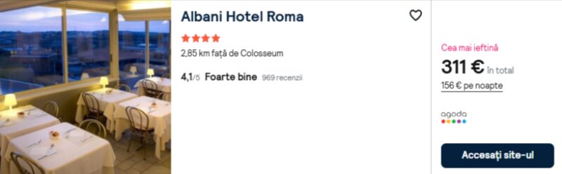229 €/pers. (zbor si cazare Albani Hotel Roma )