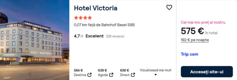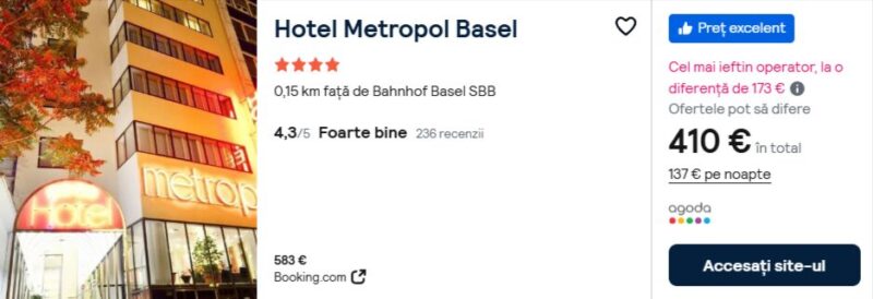 259 €/pers. (zbor si cazare Hotel Metropol Basel )