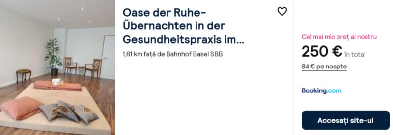 179 €/pers. (zbor si cazare Oase der Ruhe- Übernachten in der Gesundheitspraxis im Herzen von Basel )