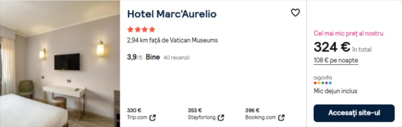 204 €/pers. (zbor si cazare Hotel Marc’Aurelio )