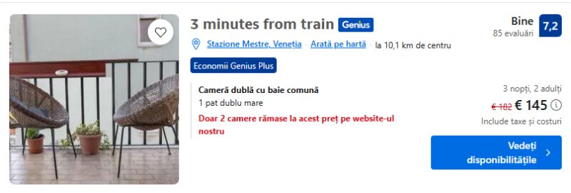 108 €/pers. (zbor si cazare 3 minutes from train )