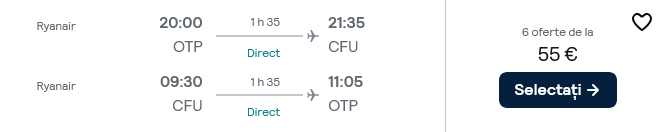 55 €/pers. ( Zbor Bucuresti – Corfu )