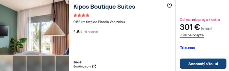 217 €/pers. (zbor si cazare Kipos Boutique Suites )