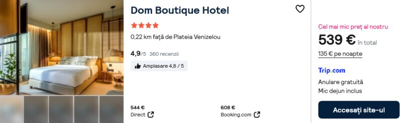 336 €/pers. (zbor si cazare Dom Boutique Hotel )