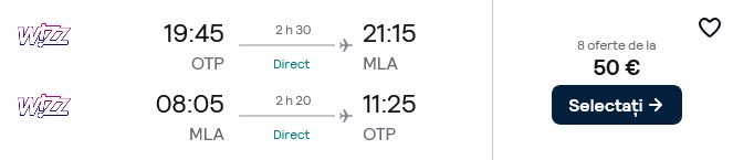 50 €/pers. ( Zbor Bucuresti – Malta )
