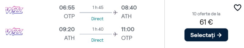 61 €/pers. ( Zbor Bucuresti – Atena )