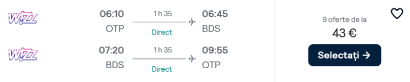 43 €/pers. ( Zbor Bucuresti – Brindisi )