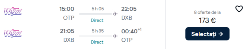 173 €/pers. ( Zbor Bucuresti – Dubai )